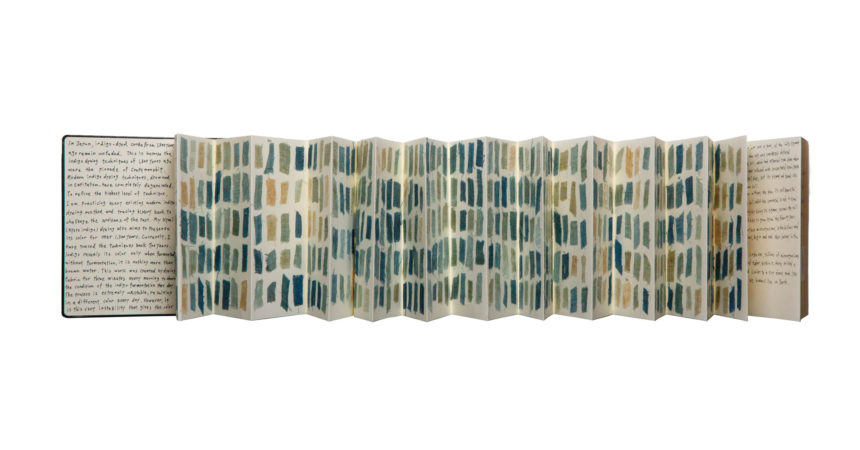 I delivered a Kyoai(Kyoto indigo) dyed artwork using Moleskine notebooks to the Moleskine Foundation in Italy—traditional notebooks once loved by Van Gogh and Picasso.